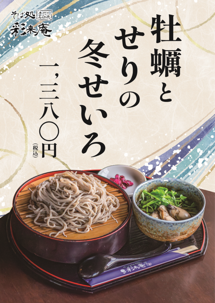 2026 0107 牡蠣とせりの冬せいろ Post Share Pocket Pin it 牡蠣の旨味が滲み出たアツアツのつゆに自慢の蕎麦をくぐらせて頂く贅沢せいろ 今が旬のせりの歯ごたえと香りがさらに風味を豊かにします また、添えてある山椒味噌をつゆに加えると かきの旨味が引き立ちますので、味変でお楽しみください 1月定休日のお知らせ 前の記事 獄辛肉みそ蕎麦 次の記事